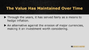 What makes a gold? Gold has been widely used before the existents of paper money (fiat money). Research stated that its usage was detected for over 3000 years; how can it retain its appreciated value? Gold has maintained its value through time. People perceive gold as a way to preserve their wealth from one generation to the next.