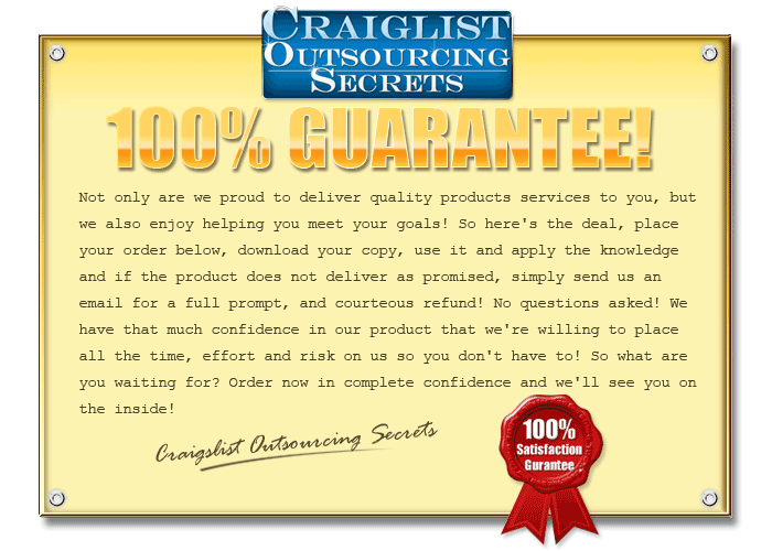 You see having some or part of the pieces of the puzzle is just as good as having none of them. Without complete knowledge you're only kicking yourself and wasting both your time and money. Craigslist Outsourcing Secrets puts you on the right track to starting your business. Learn to walk before you run and I can guarantee you'll do very well!