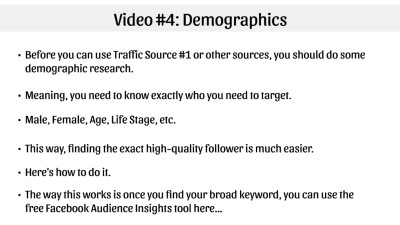 This traffic source is free, and uses a method that is quite popular in the world of social media. You will use what you learned in Video #3 and apply it here. Also, this specific traffic method allows you to piggyback on existing traffic that is already out there, and you’ll learn how to double or even quadruple your exposure.