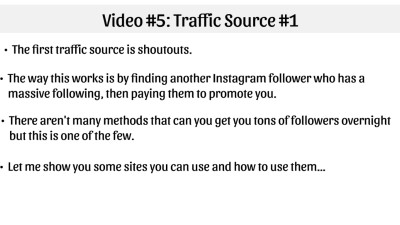 The first traffic source will allow you to build your Instagram following fast. And while the majority of “fast methods” don’t work, this one does—and it works really well too. It does cost you, starting at $50 and up, but it’s a nice shortcut if you don’t want to spend months on end trying to build your profile up. But again, you must do this right, which is why you’ll be using what you learned in the previous videos and applying them to this step.