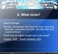 Now this does not mean you have to use video 6. You could create your lead generation business specifically around Local leads and target only offline leads. That is merely up t. Ebay leads are great too, because people go their because they want to "buy" something, or have a good idea of what they want to buy. Notice I said the word buy? Again, this means these are generally high quality, qualified leads.