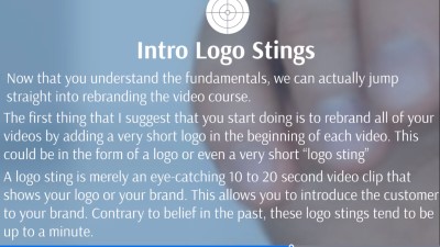 Now that you understand the fundamentals, we can actually jump straight into rebranding the video course. The first thing that I suggest that you start doing is to rebrand all of your videos by adding a very short logo in the beginning of each video. This could be in the form of a logo or even a very short “logo sting”. Some common questions include, “How long should this be?” as well as, “How do you go about finding or creating these logo stings?”