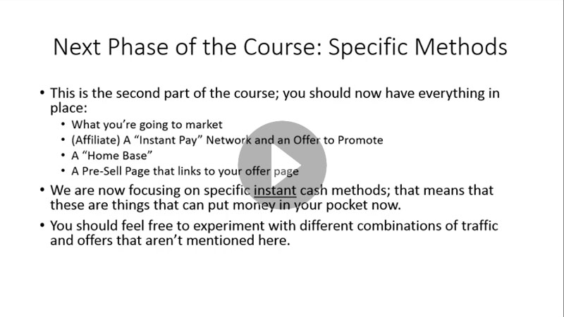 Get instant access to 26 step-by-step video tutorials lasting over 2 hours that show you how to make cash fast even if you have no online presense or little to no sales experience!